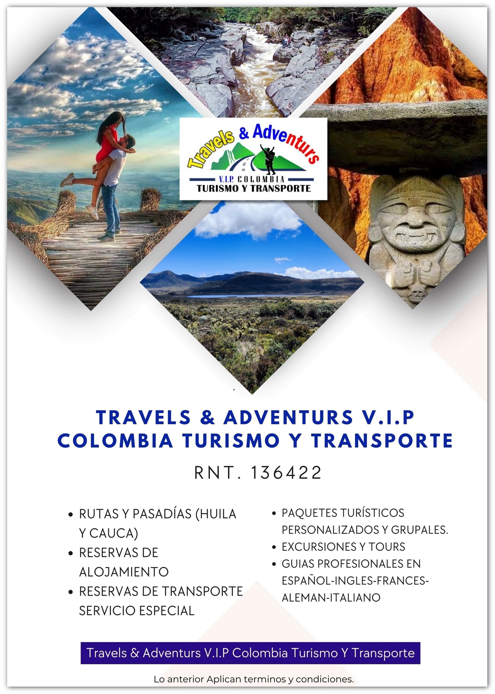 Paquetes Turísticos Personalizados, Transporte Servicio Especial, Hotelería - Alimentación - Guías Profesionales en Español, Ingles, Italiano, Frances y Alemán).